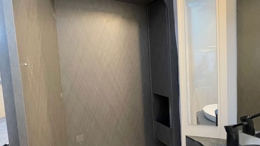 | Pedana doccia in legno ed appendiabiti |